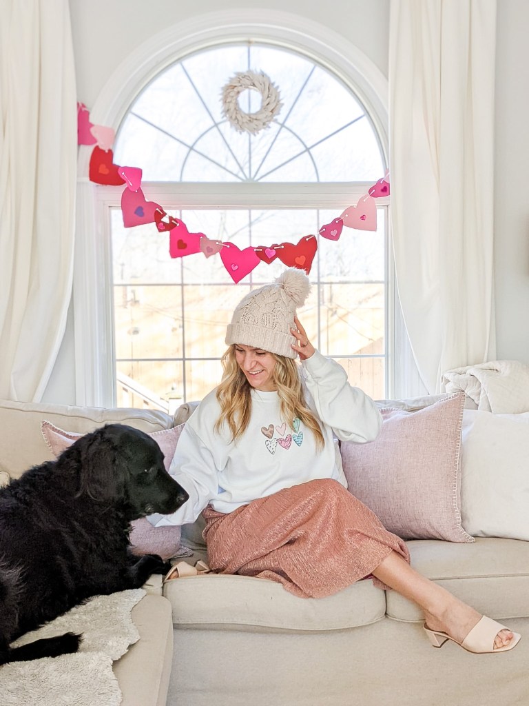 - Six Hearts Crew Sweatshirt from Midnight Forest. This sweatshirt is so cozy and the hearts are perfect for Valentine’s Day or any day really. You can pair this with a pair of leggings, jeans or dress-it-up with a cute skirt! Midnight Forest is also a Canadian Company, based right here in Ontario!